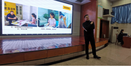祖雪蛟为学子们分享了丰富的采访案例,包括学生记者采访无界青年餐馆创始人宁瑞忠、知名漫画家左手韩、音乐人廖峻涛等人在内的20个新闻采访故事。通过兼具趣味性与教育性的案例,祖雪蛟现场传授了大量的采访写作方法与技巧,并鼓励在场学子们在采访中发挥积极主动性,在采访过程中注意采访形象、时刻以专业的姿态迎接受访者。讲座后,祖雪蛟就实习注意事项、采访技巧等内容认真回答了学生们的提问。