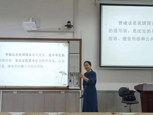 刘艳清老师首先从国家、社会、个人层面给同学们讲了推广普通话的重大意义。接着,她介绍了H视频